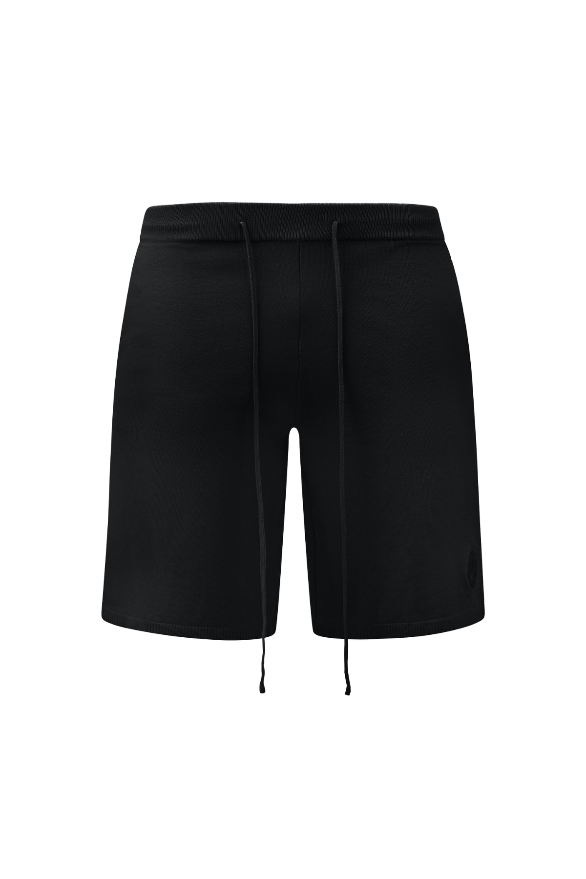 Elevated comfort meets sharp construction in the Black Knit Shorts. Featuring flush side pockets, an elasticated waist with drawstrings, and ribbed hems for a clean finish. The tonal Kosmos motif adds a refined edge, understated and intentional.