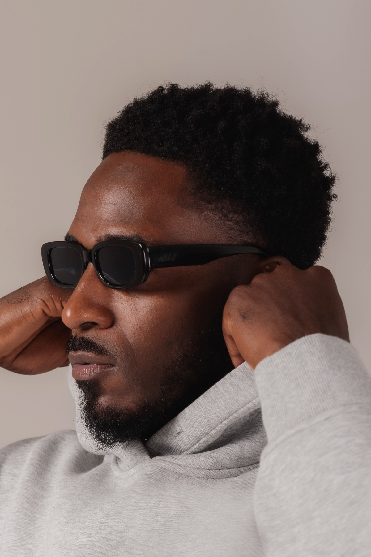 Available in Black with smoke lenses — a timeless pairing that makes a statement without speaking loudly.